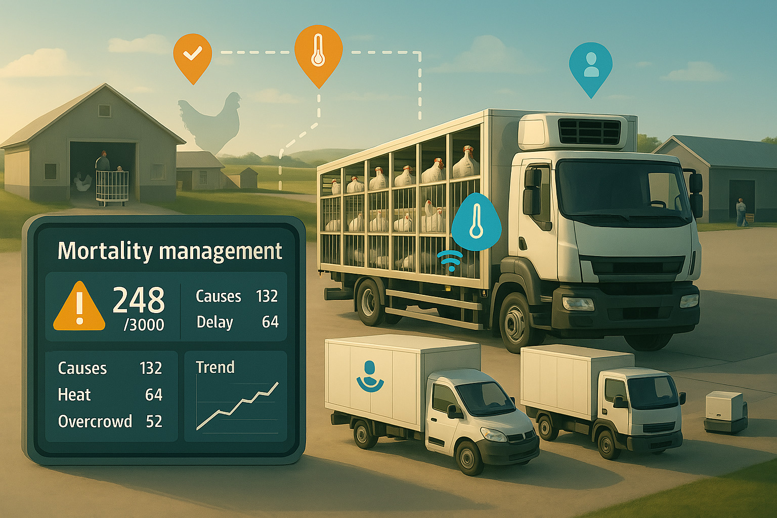 Live poultry logistics carry inherent risks, particularly in long-distance transportation. Mortality rates directly impact profitability and animal welfare. PoultiFyTM introduces intelligent mortality management tools that empower poultry businesses to take proactive control: